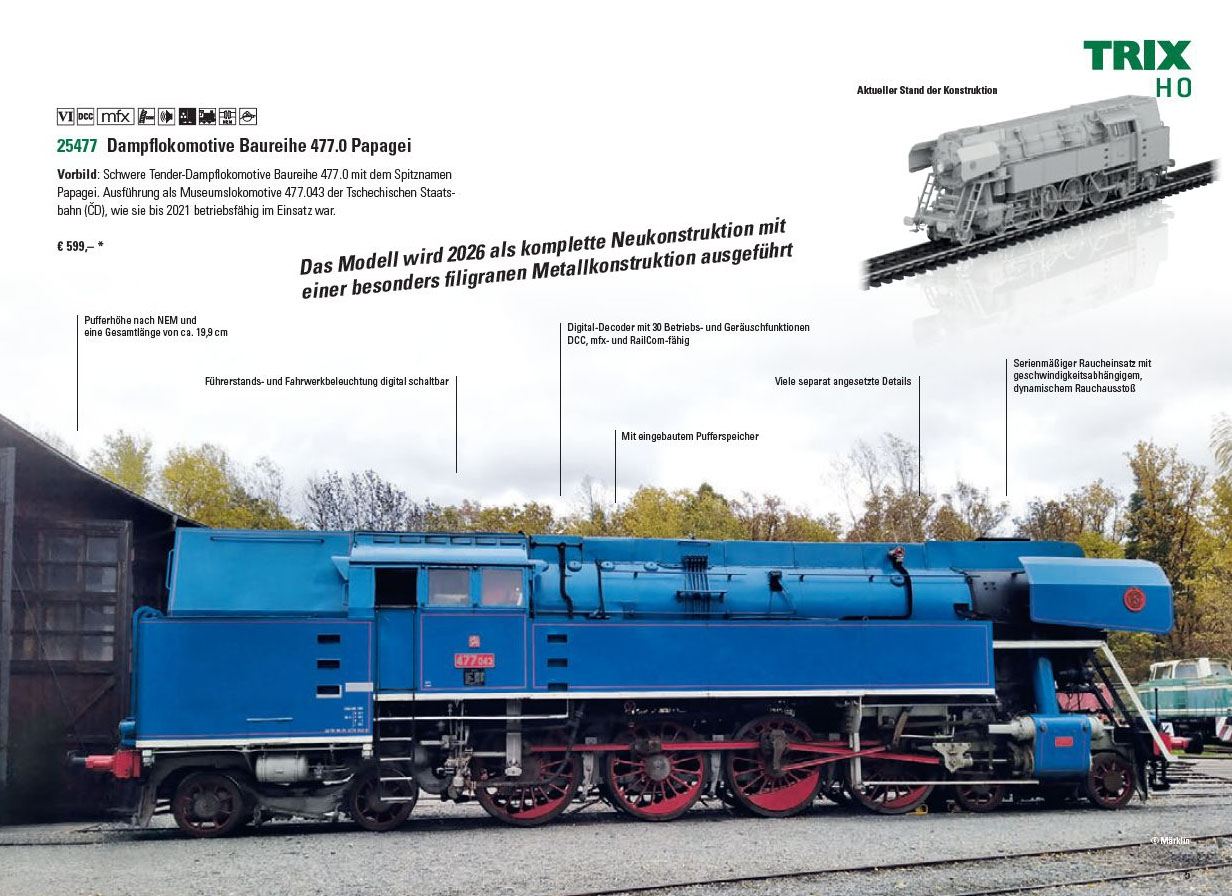 První novinka je lokomotiva 477.043 ČSD od. f. TRIX